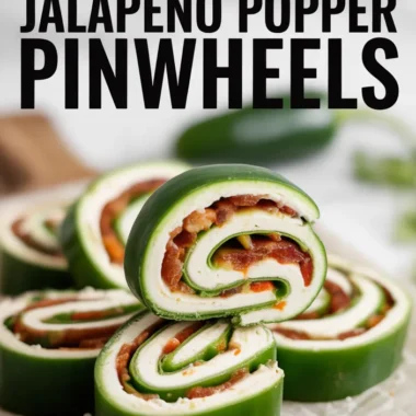 I love serving Jalapeno Popper Pinwheels at any gathering because they vanish before the chips, no kidding. I mix tangy cream cheese with spicy jalape